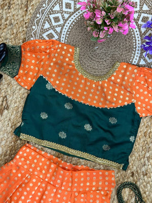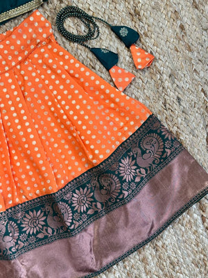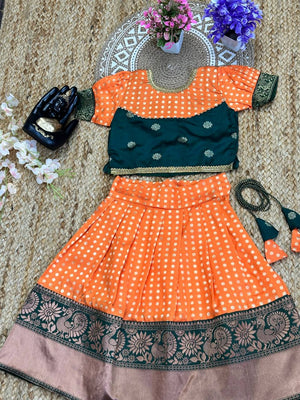 Aadhya Orange Kanjivaram Silk Kids Lehenga-Top