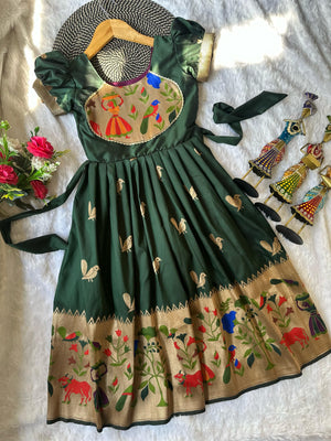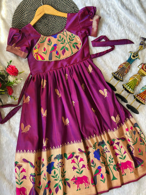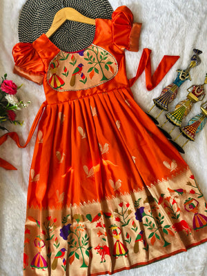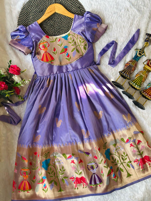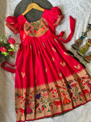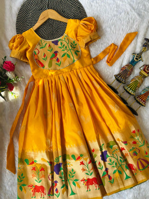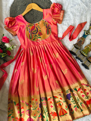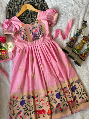 Blossom Pure Silk Paithani Border Kids Gown