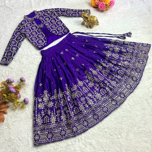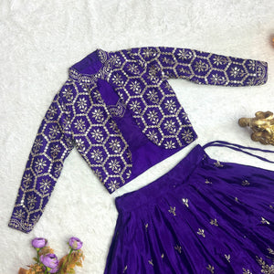 Desirable Soft Chinon Silk Full Stiched Lehengha Choli With Koti
