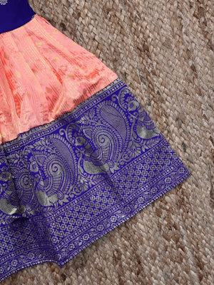 Celebrate Onam in style with this traditional Kerala silk kids' pattu pavadai gown. Crafted from rich silk fabric, it offers a comfortable fit while showcasing authentic cultural elegance. Perfect for festive occasions, this gown combines heritage design with vibrant colors, making your child stand out during celebrations. Durable and easy to wear, it ensures both beauty and practicality for your little one.