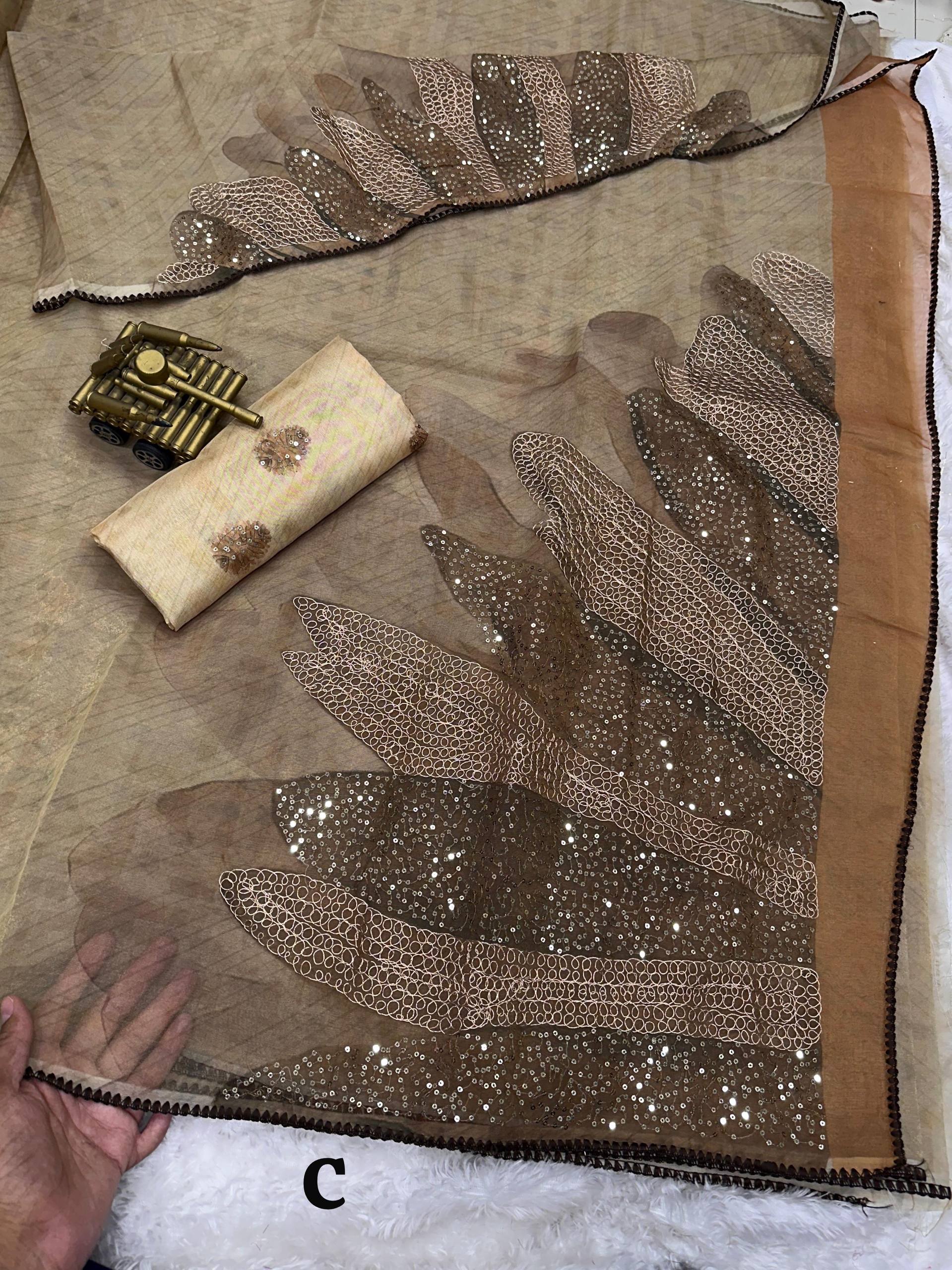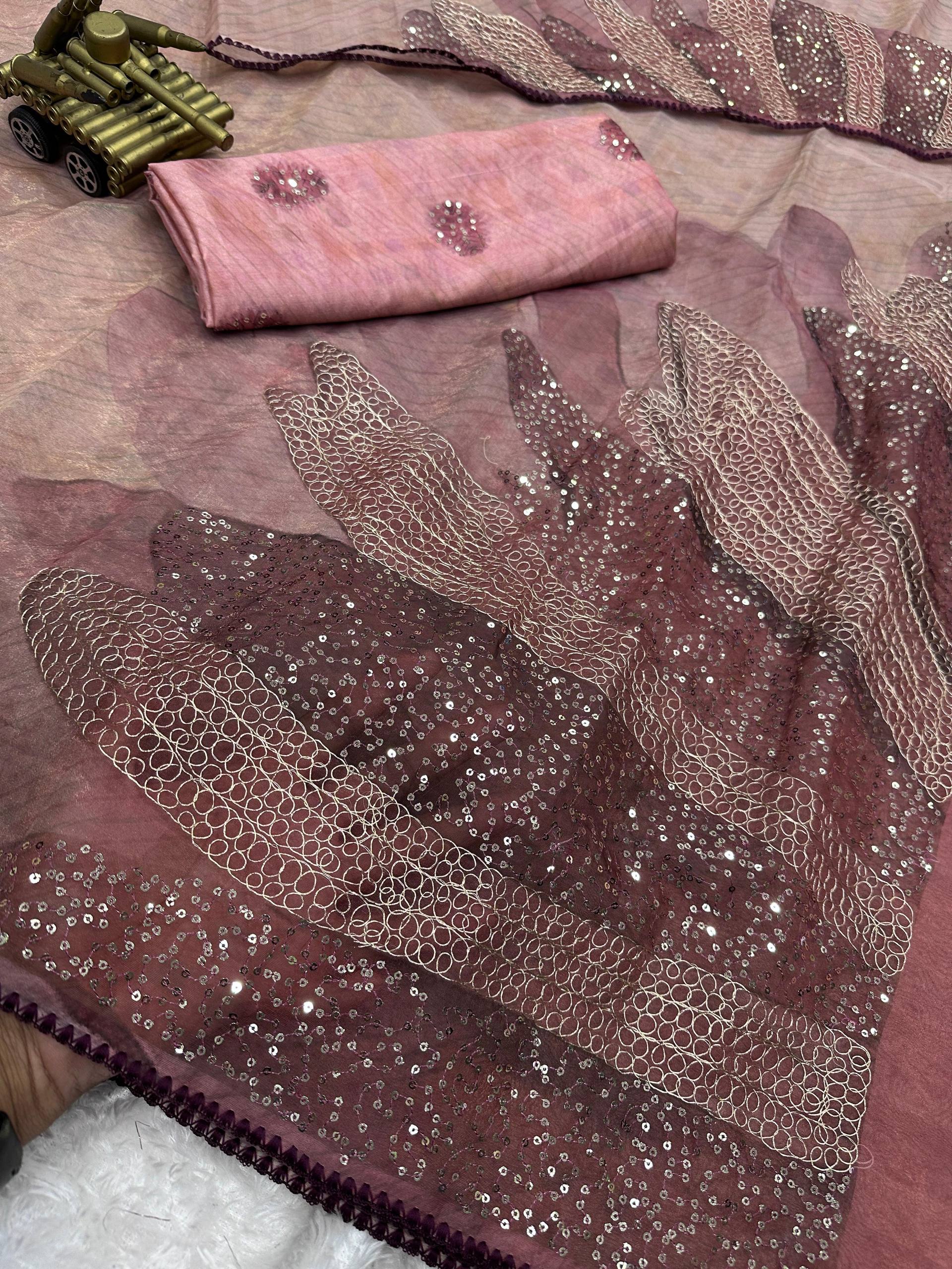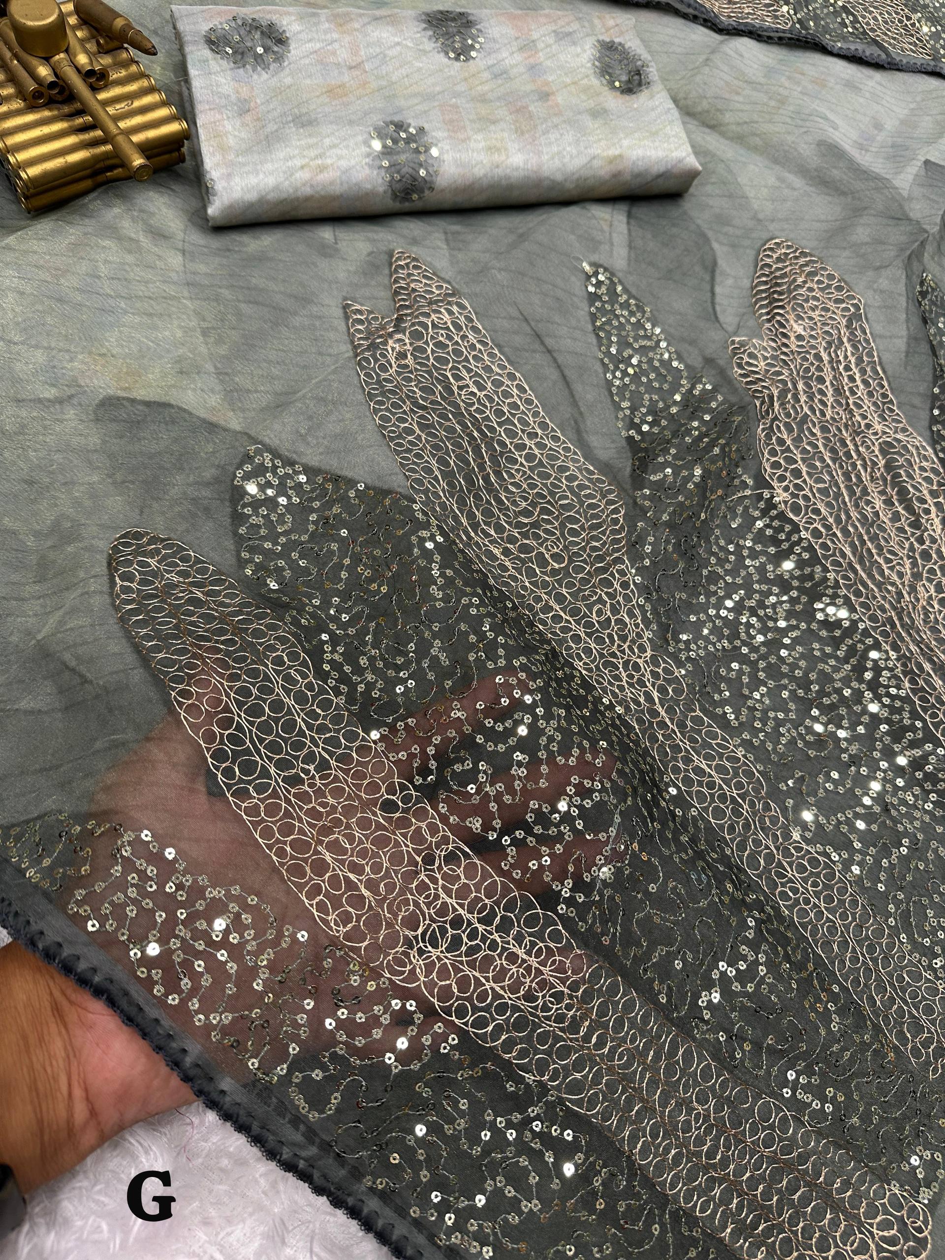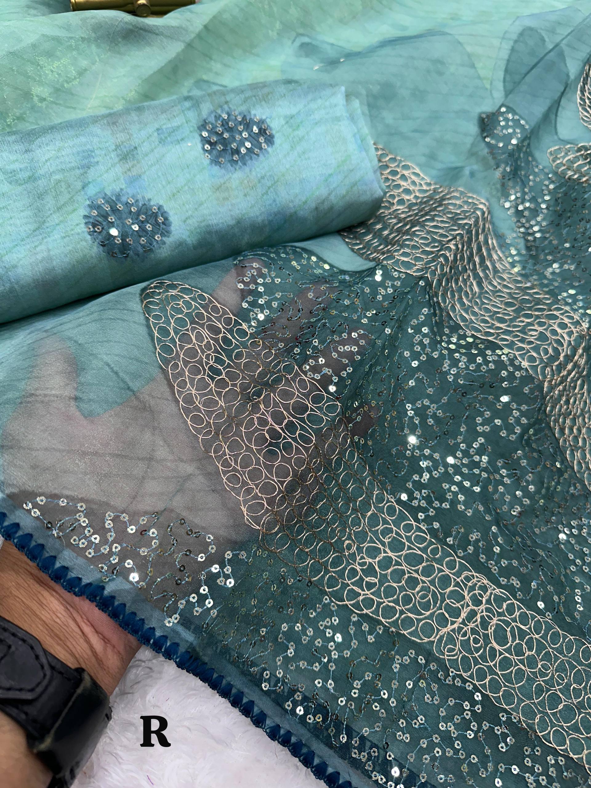 A Digital printed pure tissue organza beauty for your wardrobe with unique pitta work with touch of sequins