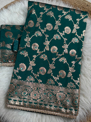 | Design | 1- Zari jacquard weaving in saree & blouse 2-mirror work in full saree 3-fancy pearl zari lace in saree border |