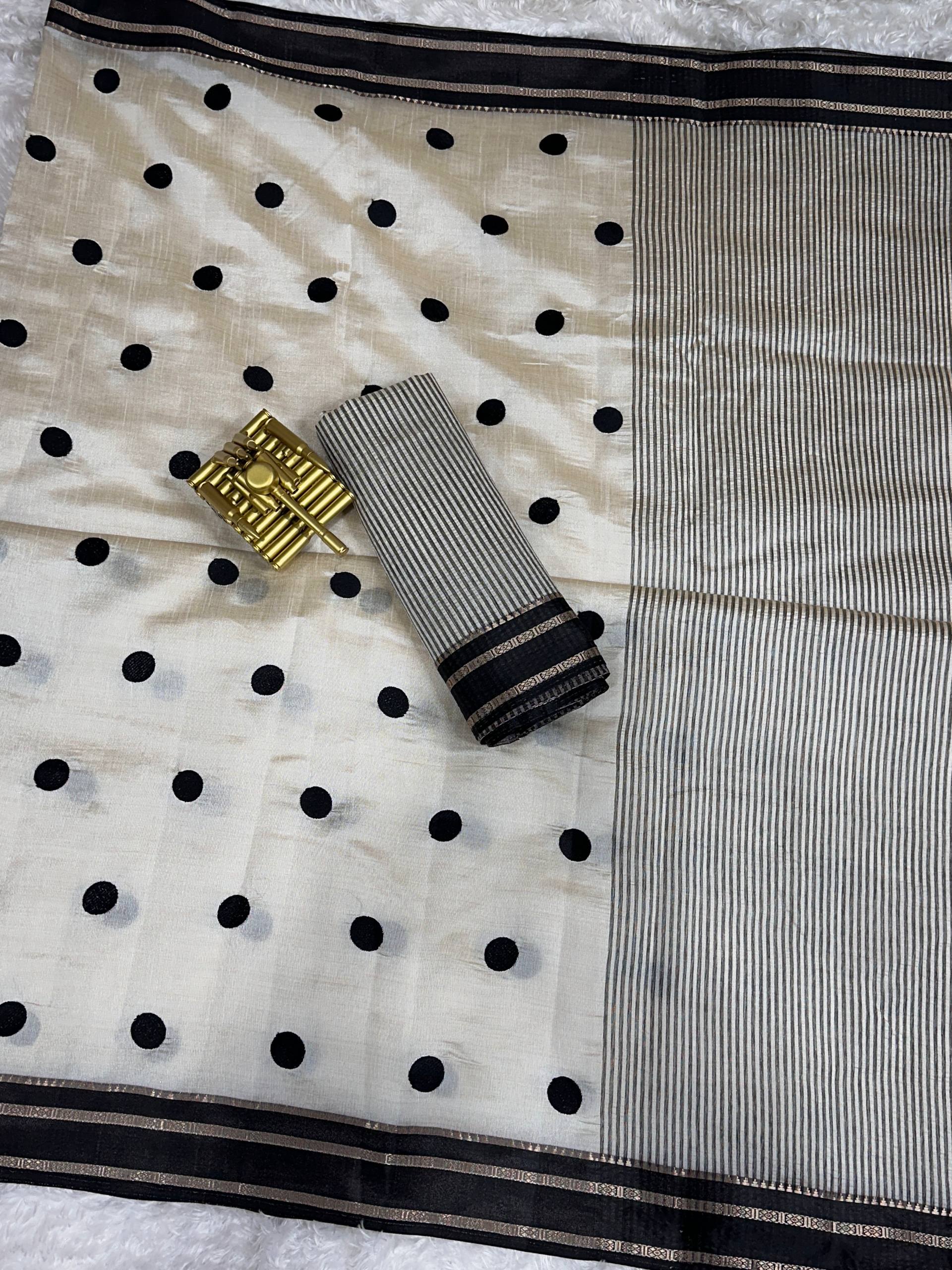 Evergreen Polka Dots Beuaty With Tusser Silk Saree With Blouse