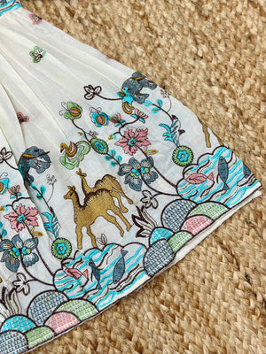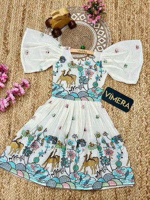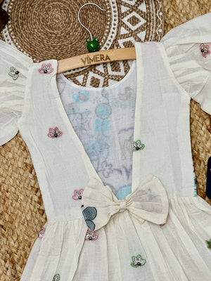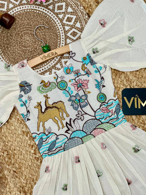Fish Sleeve Cotton Embroidery Work Kids Frock
