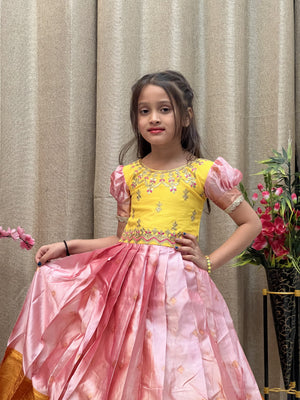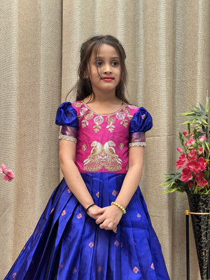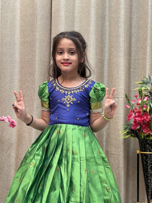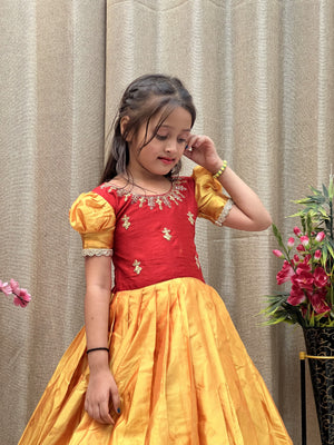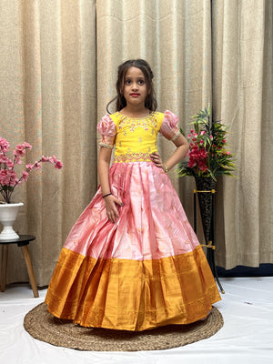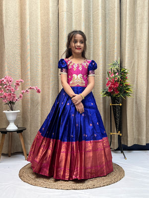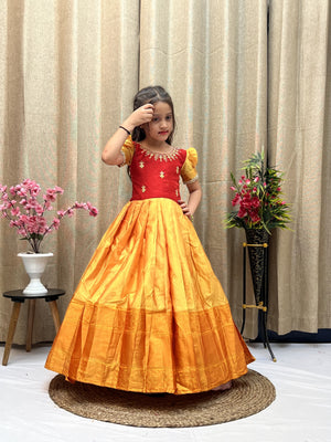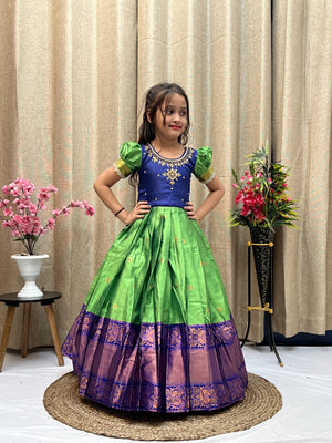 Full Stitched Pure Kanjivaram Silk Embroidery Gown for kids