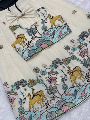 Glamorous Pure Cotton Hiran Embroidered Kids Lahenga and Top