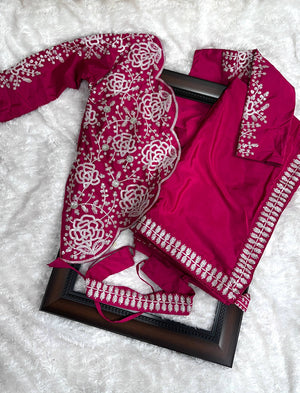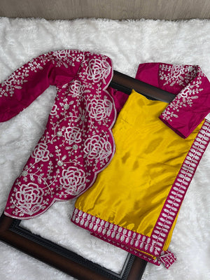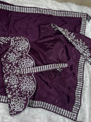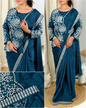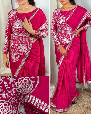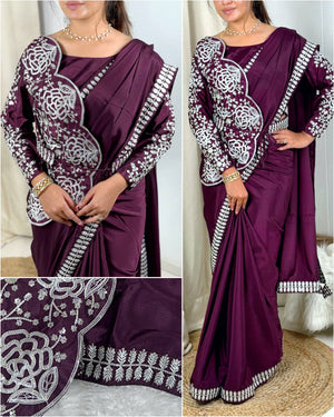Glimpse Embroidered Work Saree With Stylish Stiched Koti Blouse