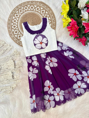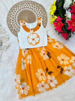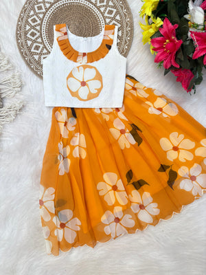 Juhi Georgette Print Shifli Work Kids Lahenga-top