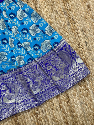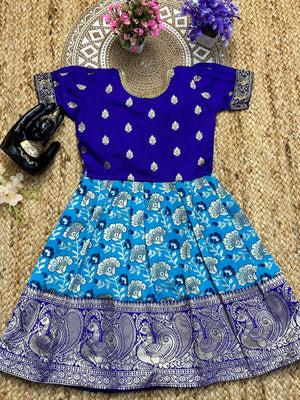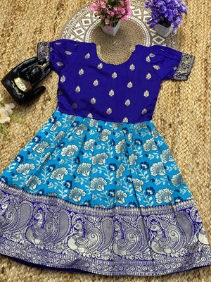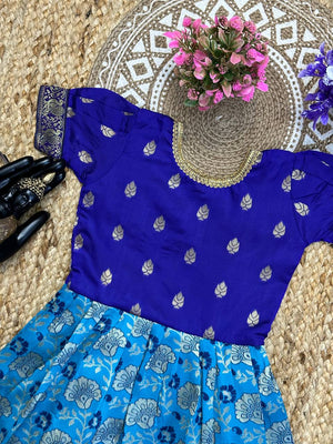 Laya Trendy Royal Blue & Sky Banarasi Silk Kids Gown