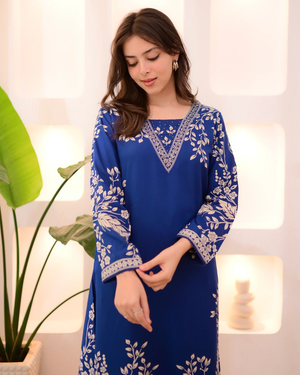 | Work | Floral Print with Embroidered Neckline & Cuffs |