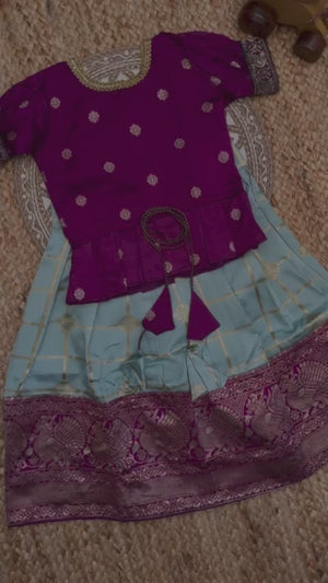 Meera Desirable Pure Mysore Silk Kids Lagenga-Top