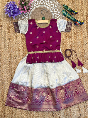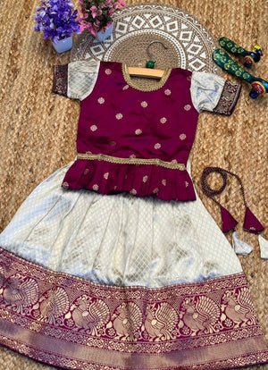Myra Admirable Banarasi Silk Kids Lahenga-Top