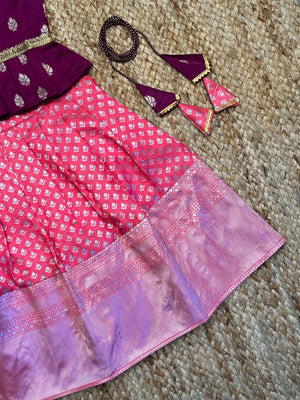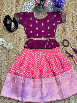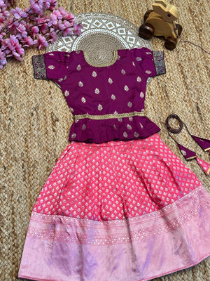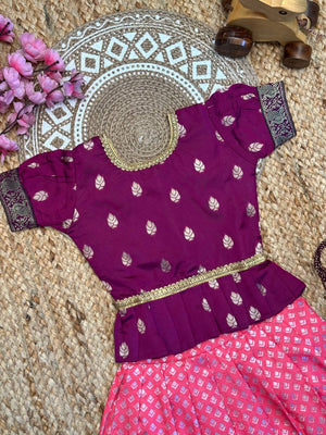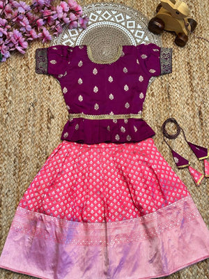 Padma Traditional Banarasi Silk Paavadai Kids Lahenga-Top