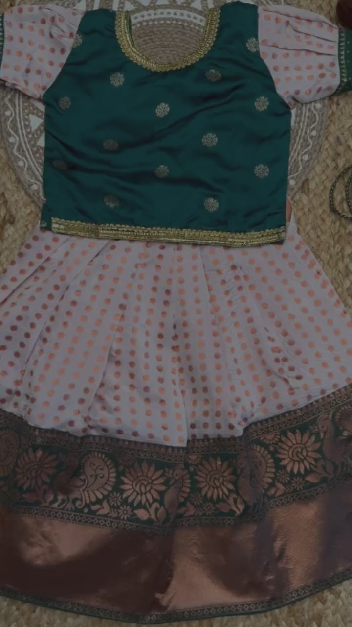 Pavithra Epitome Green Silk Kids Lehenga-Top