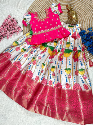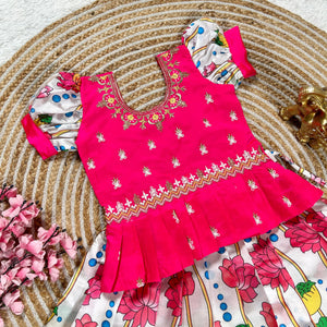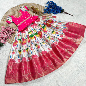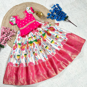 Presenting our Real Modeling Shoot of our Beautifully Stitched Lichi Silk Lahenga Choli with Beautiful Printed Design. For Pongal/Sankranti Festive Season