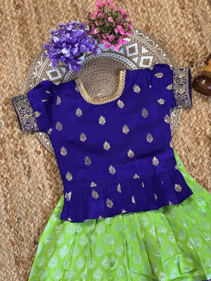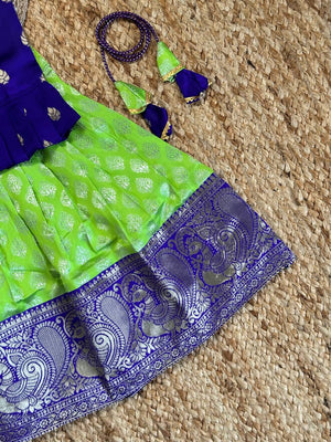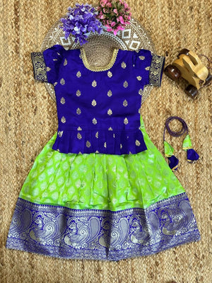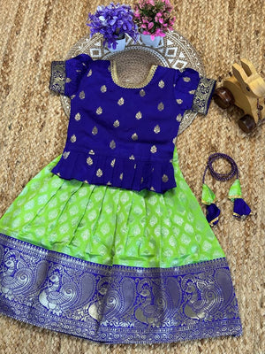 Priya Epitome Blue-Parrot Art Silk Kids Lahenga-Top