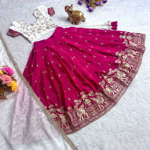 Radiant Soft Chinnon with Elephant Embroidery Work Lehengha Choli With Dupatta