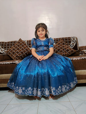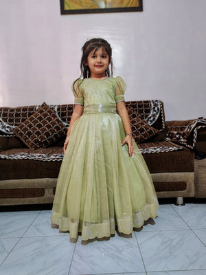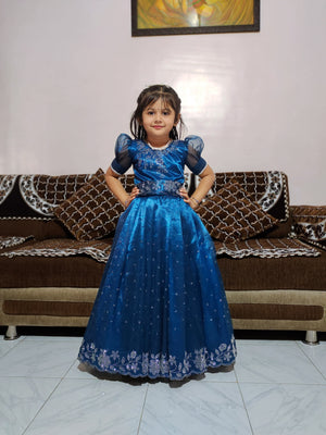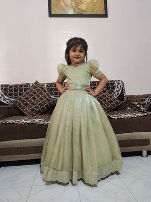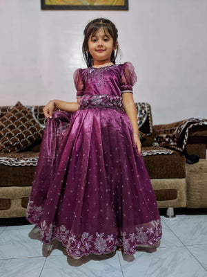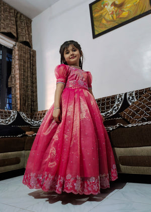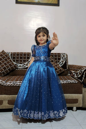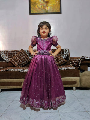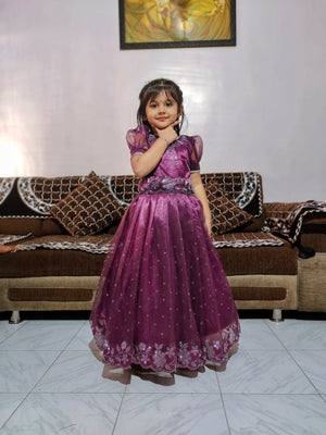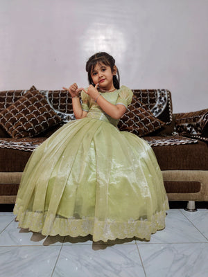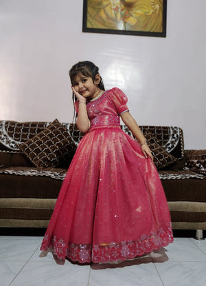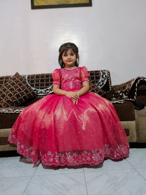 Rare Jimmy-Silk Shining Fabric With Swarovski Work Gown for Kids