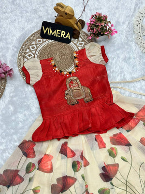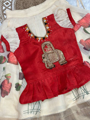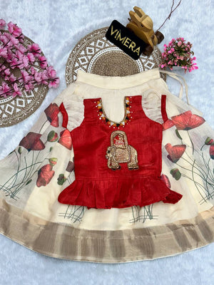Revaa Erode Cotton Maggam Work Kids Lahenga-top