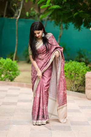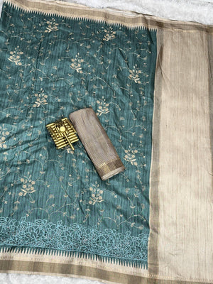 Statement Tusser cotton Embroidery work Saree With Blouse