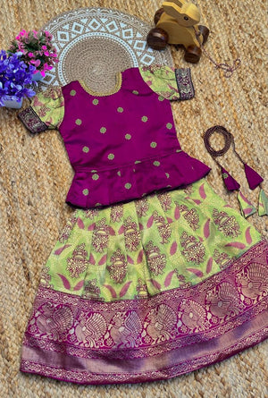 Yamini Stunning Pure Silk Kids Lahenga-Top